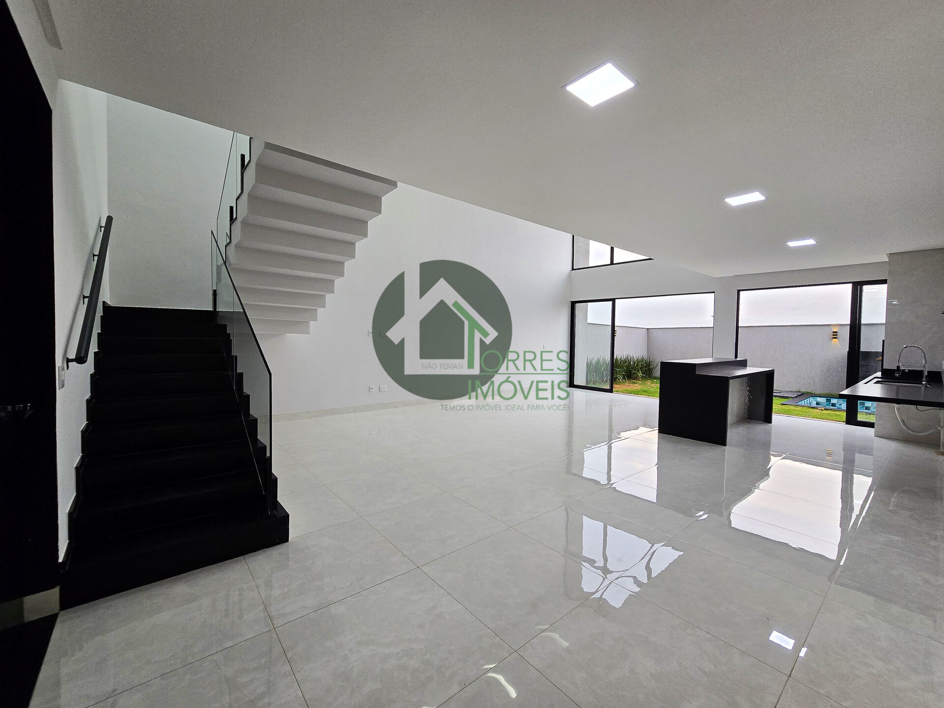 ✅Sala pé-direito Alto , com integração com cozinha e área de lazer