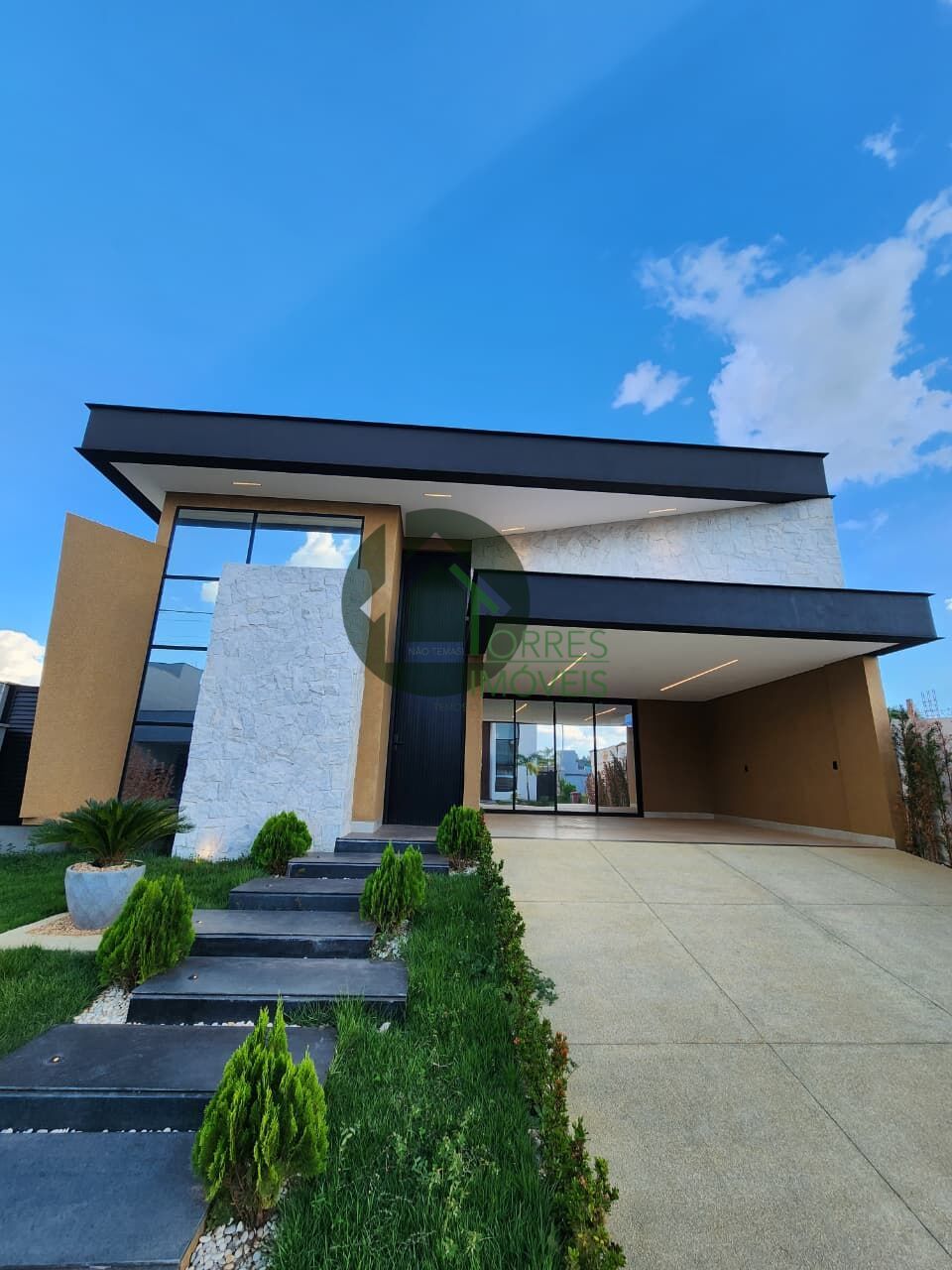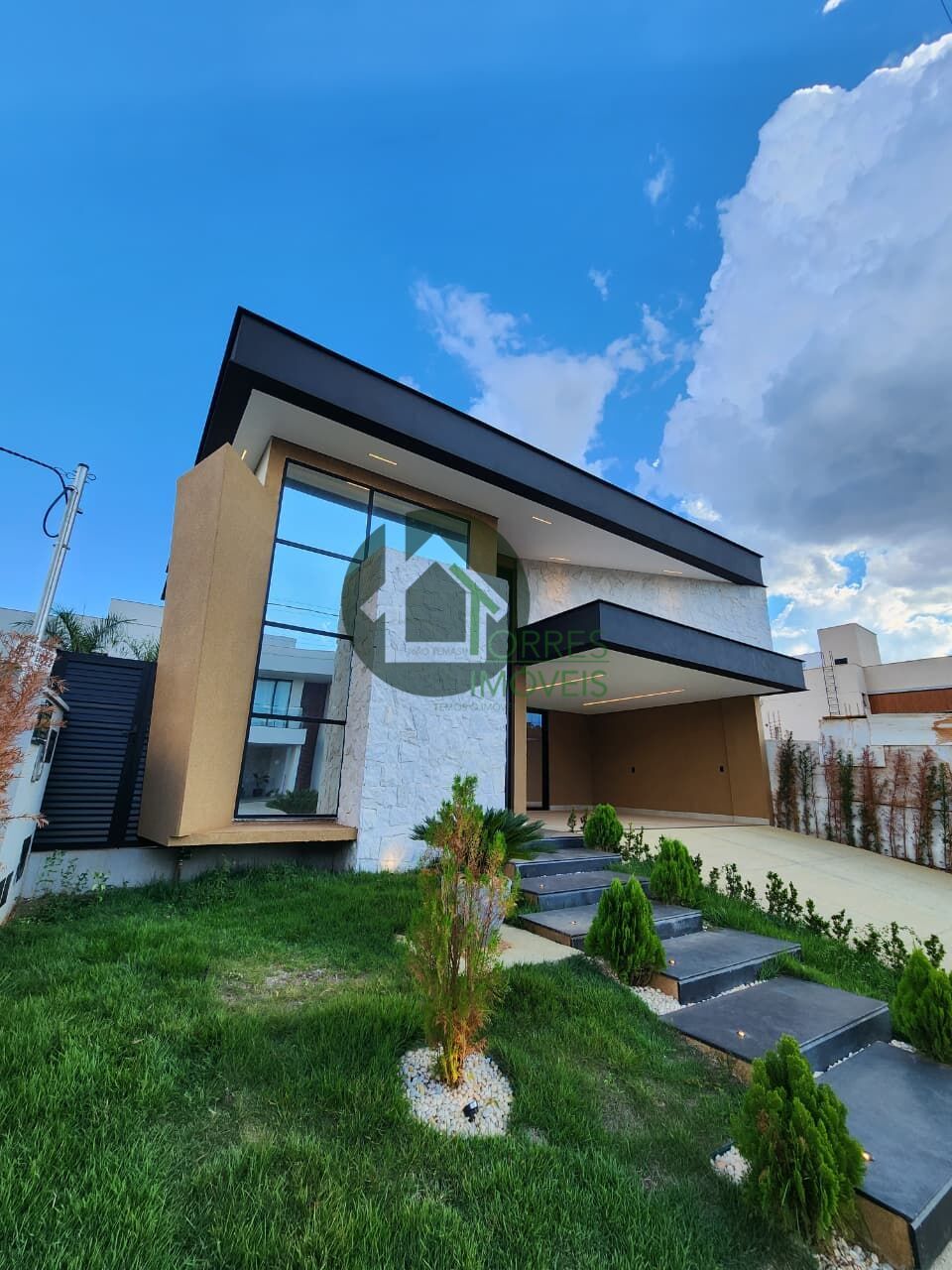 Fachada imponente, com design moderno e paisagismo assinado.